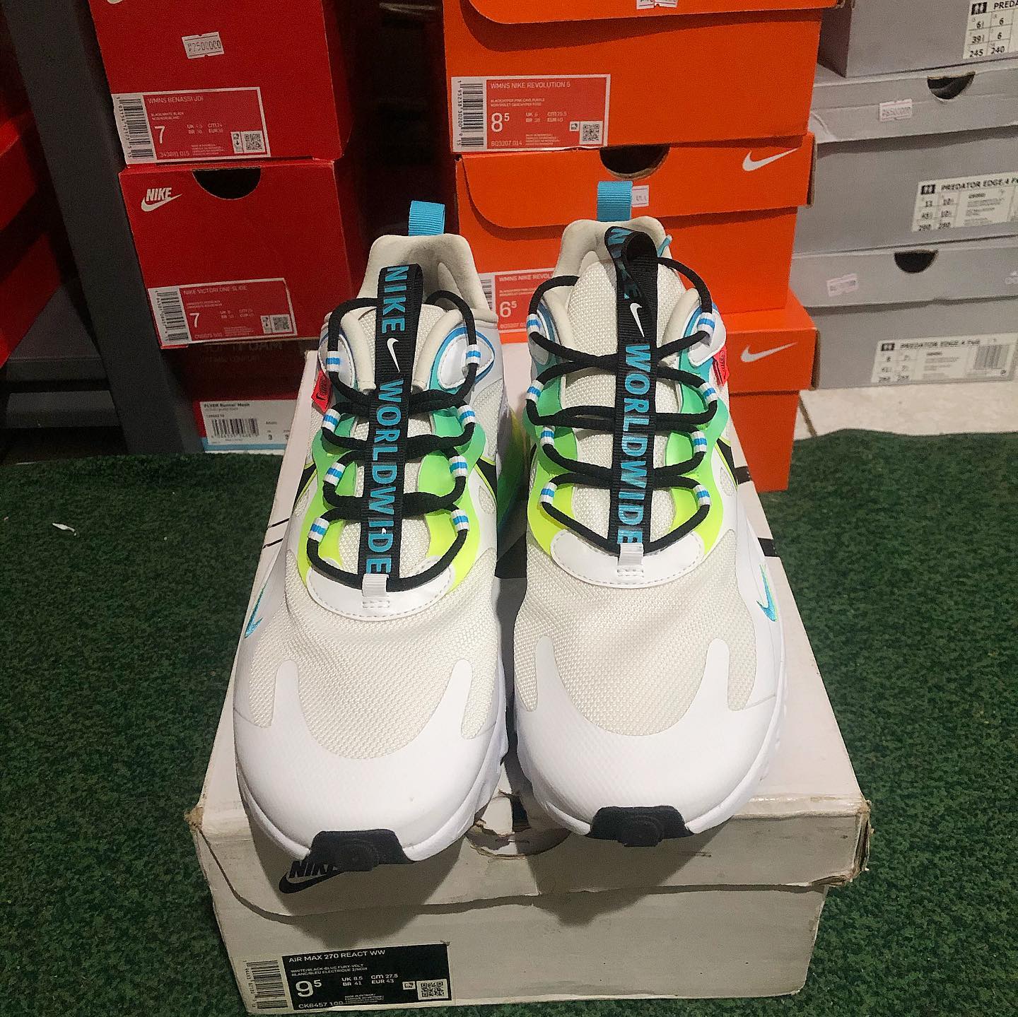The Nike Airmax 270 React Worldwide shoe offers premium 7a quality. Experience ultimate comfort and style with the first copy of this iconic shoe.